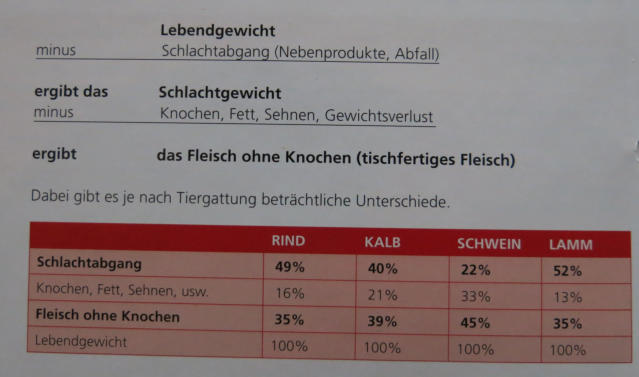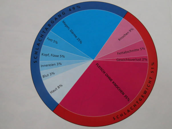 Vom Lebendgewicht eines Schlachttieres kann jeweils nur ein kleiner Teil für die